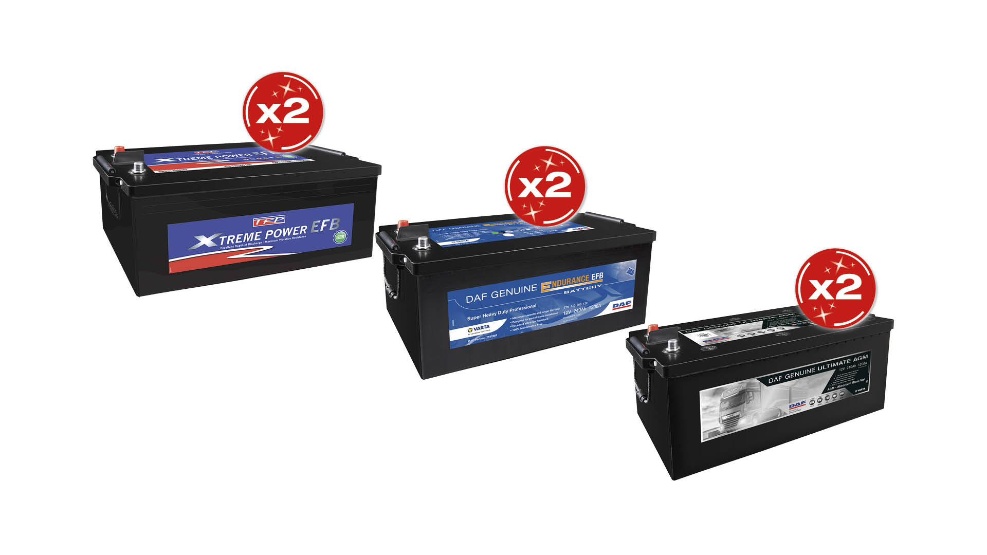 Im Herbst und Winter werden Batterien zusätzlichen Belastungen ausgesetzt. Daher ist es von entscheidender Bedeutung, sie rechtzeitig zu prüfen und auszutauschen. Nur für kurze Zeit erhalten Sie doppelte Merchandise-Punkte für das komplette Sortiment an Batterien im DAF-Webshop, einschließlich aller Original-DAF-Batterien, der besten Wahl für alle Jahreszeiten.